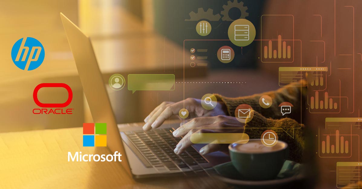 Nous vous proposons nos meilleures solutions développées par notre solide partenariat avec les géants de la technologie HP ORACLE ET MICROSOFT Sur les segments: